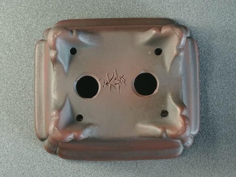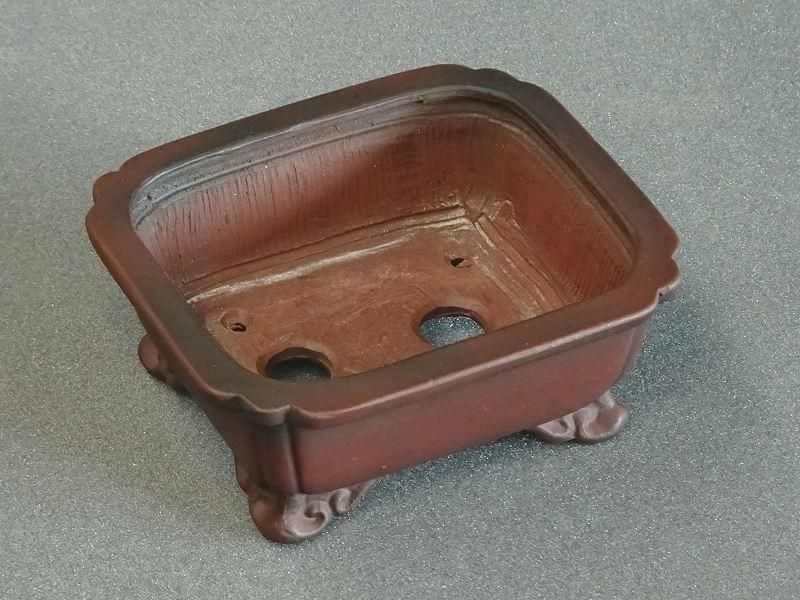 ・W357壱興2.5号紅泥外縁雲足長方鉢(85)