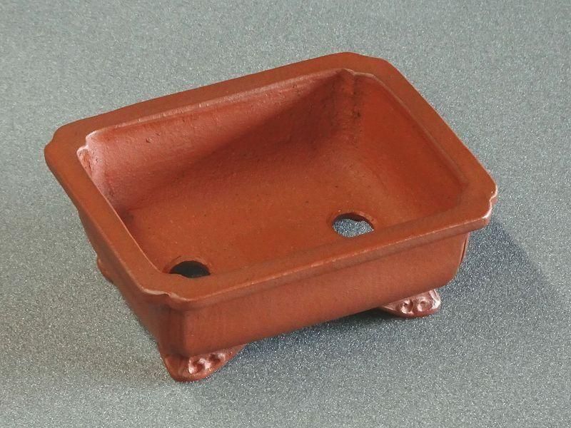 ・W357壱興2.5号紅泥外縁雲足長方鉢(85)