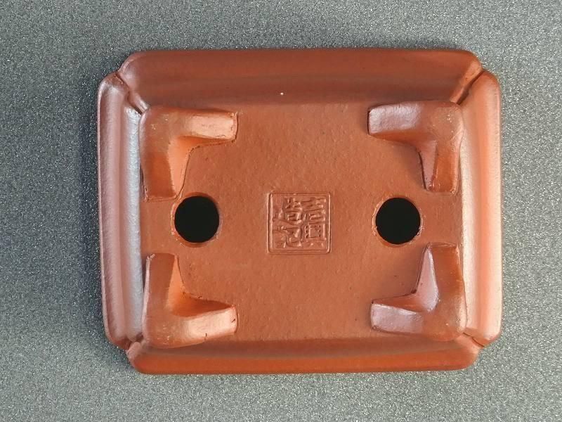壱興の紅泥外縁隅入雲足長方鉢です。