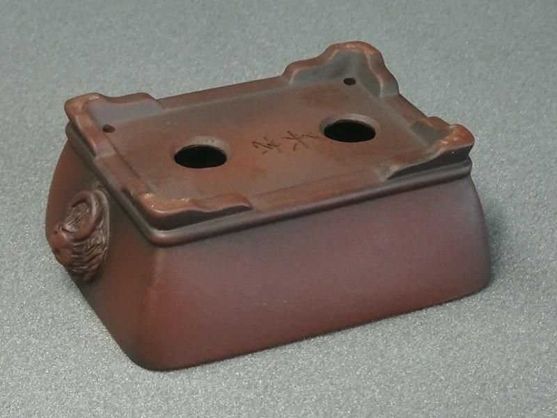 ・W357壱興2.5号紅泥外縁雲足長方鉢(85)