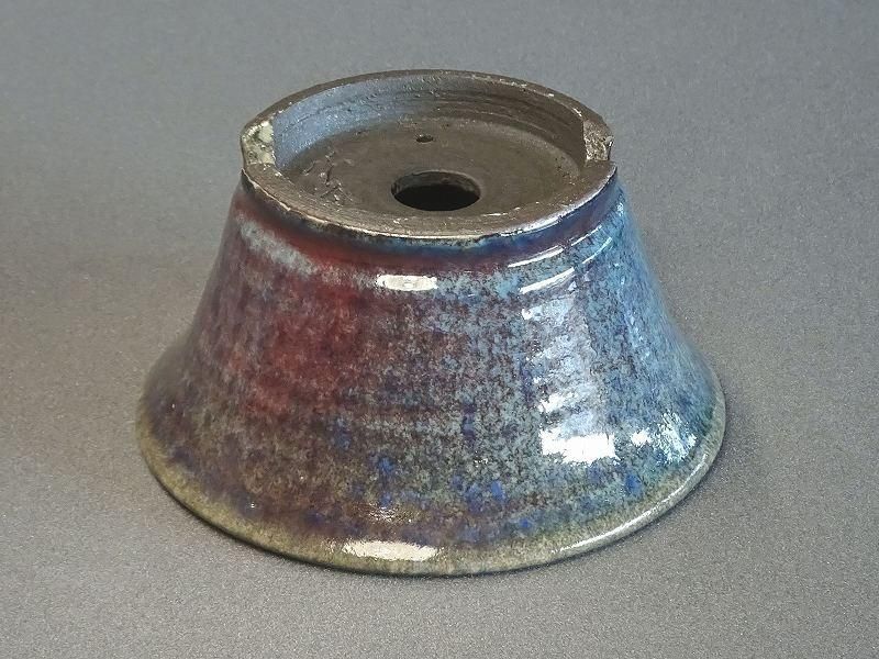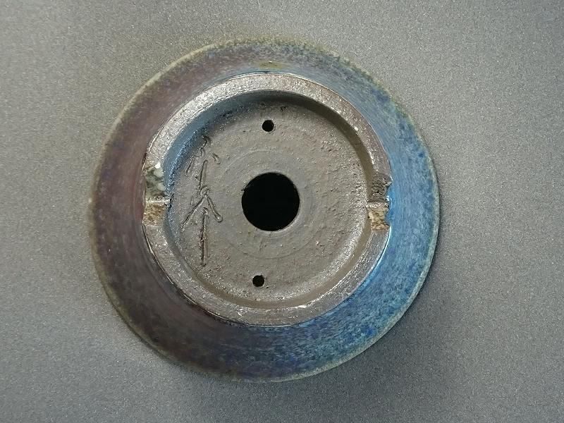 秀峰の青釉窯変反形丸鉢です。