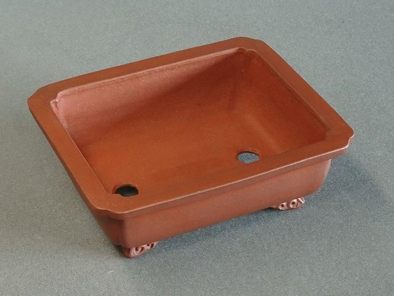 壱興の朱泥外縁隅入雲足長方鉢です。