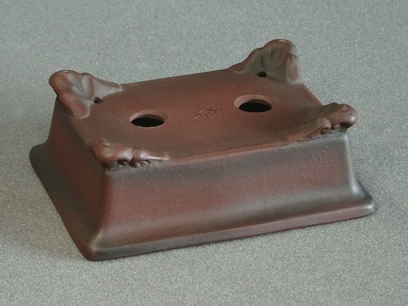 W357壱興2.5号紅泥外縁雲足長方鉢(85)