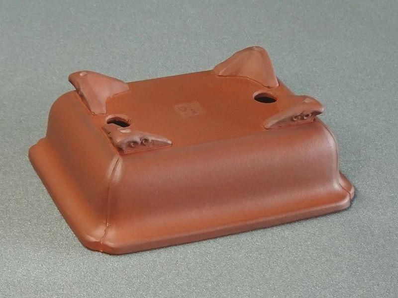 壱興の紅泥外縁隅入雲足長方鉢(深)です。